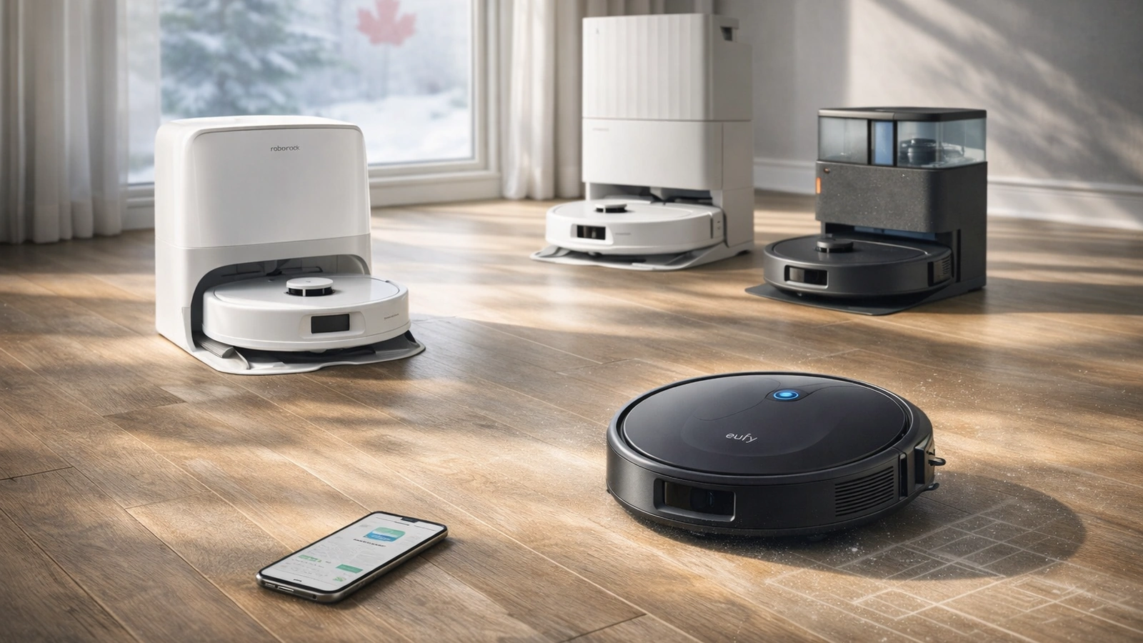 Canadian context notes include pricing availability, warranty/returns patterns, and winter debris reality (grit, salt dust, pet hair).